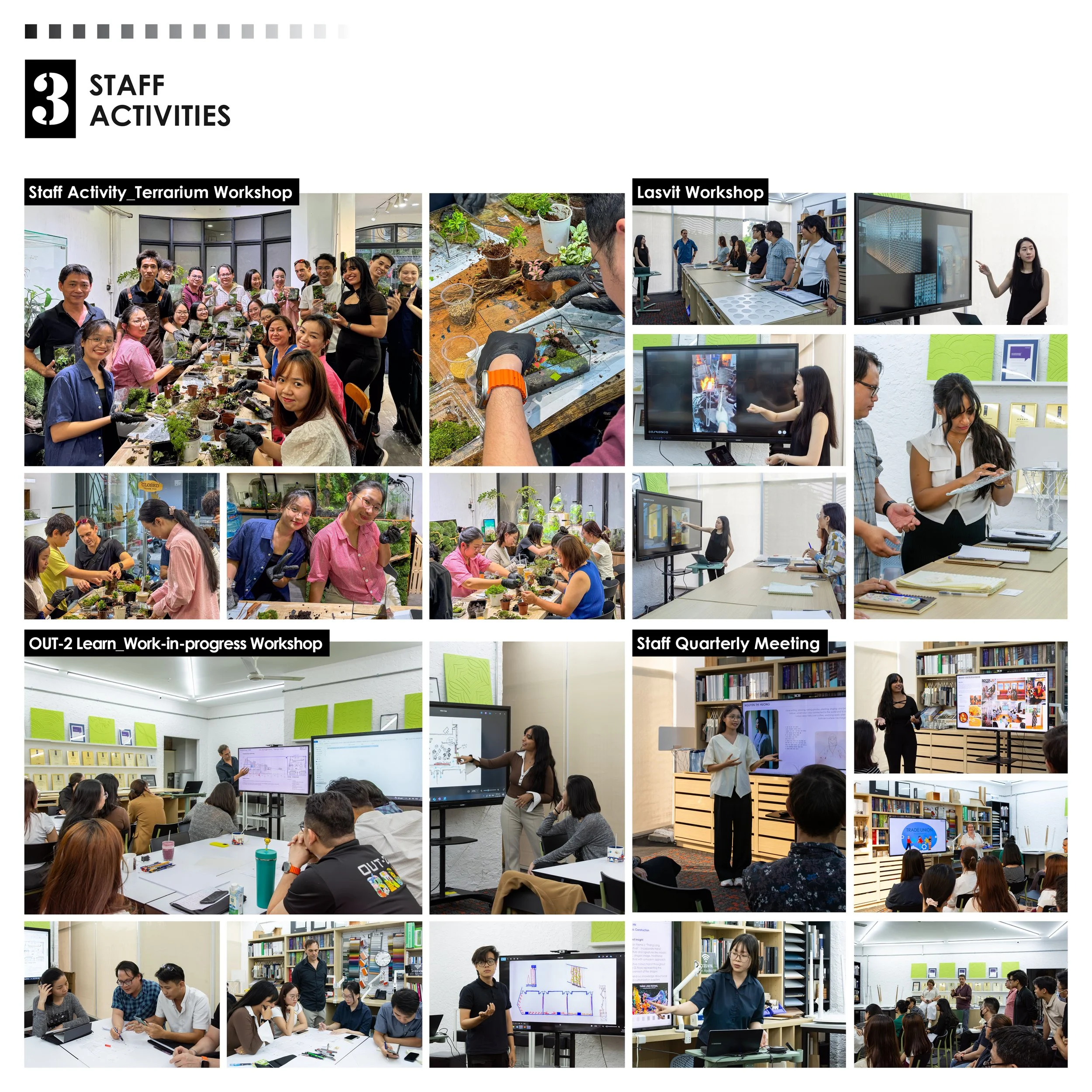 Tiếp nối cam kết thúc đẩy học tập và phát triển trong nội bộ, workshop ‘OUT-2 Learn’ tháng này tập trung chia sẻ về dự án 'Work-in-Progress'. Đây là dịp để có những cuộc trò chuyện cởi mở và nhận được phản hồi từ nhiều team khác nhau, góp phần phong phú thêm cho thiết kế bằng những góc nhìn đa dạng. Chúng tôi cũng tổ chức một buổi thực hành về quy hoạch không gian, khuyến khích tất cả mọi người tham gia đóng góp ý tưởng và góc nhìn mới, giúp team dự án hoàn thiện thiết kế cho khách hàng.