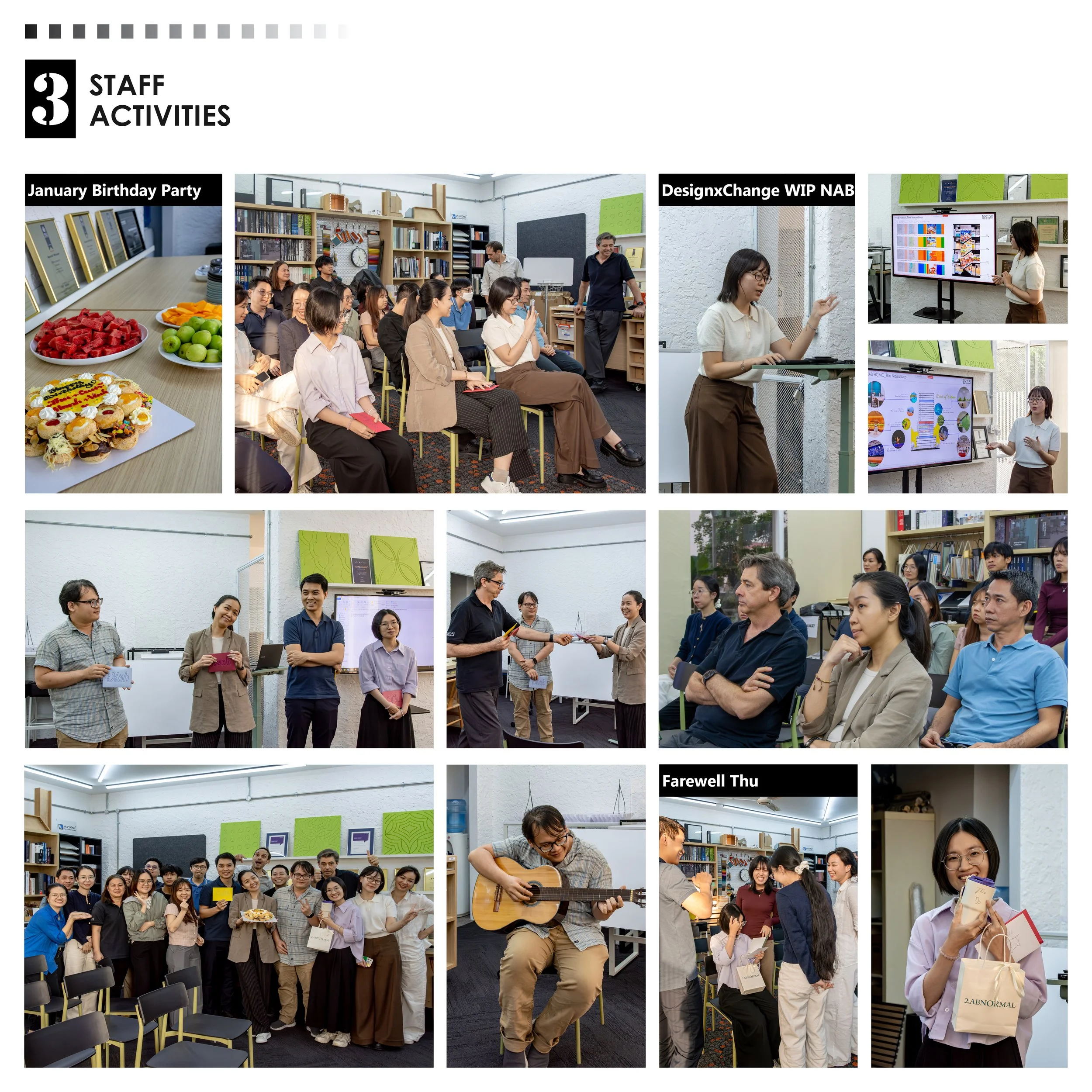 Beyond project milestones, January was also a month of people and shared experiences. The team gathered to celebrate the birthdays of Hanh, Vinh, and Cảnh, taking a pause from daily work to acknowledge individual contributions and strengthen team spirit. There was also a moment of reflection and gratitude as we said goodbye to Thư, our junior graphic designer, who concluded her two-year journey with OUT-2, leaving behind warm memories and meaningful work.